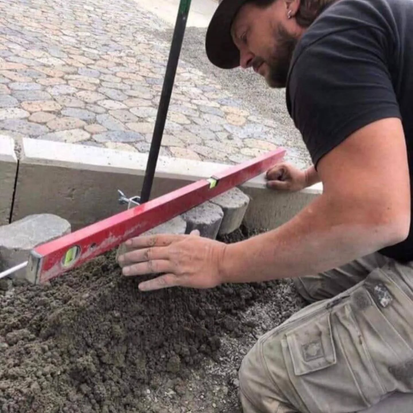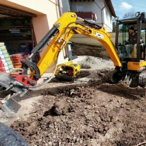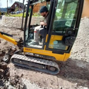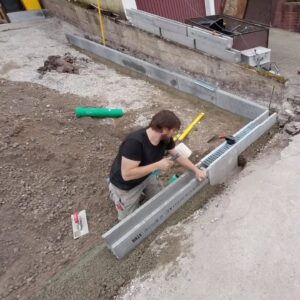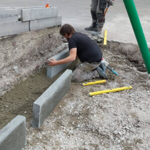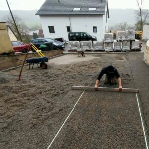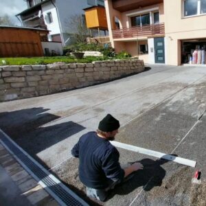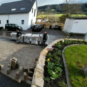 Austausch Altbestand Polygonalplatten durch Neubestand Granit-Pflaster und Pflaster-Einfassung
