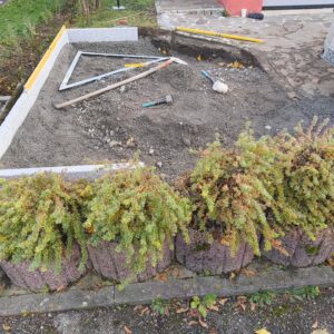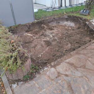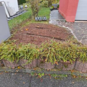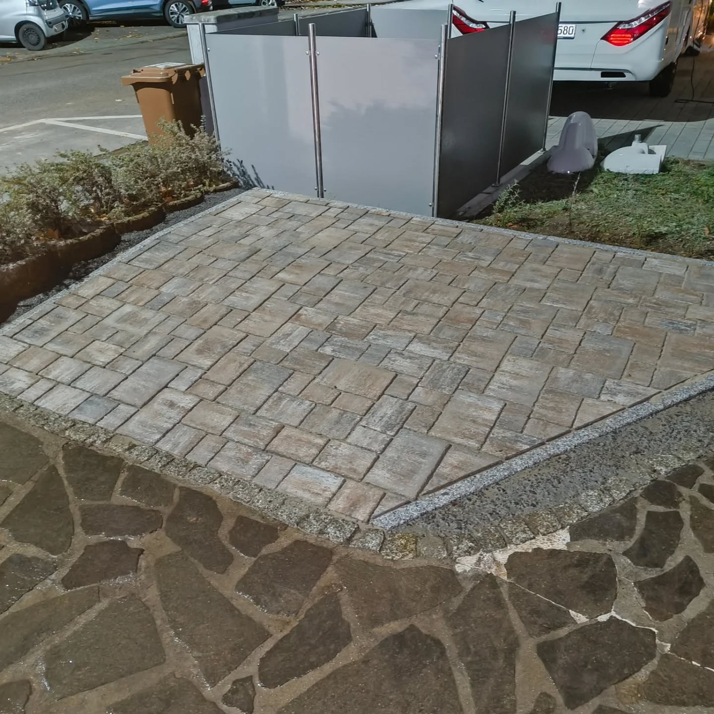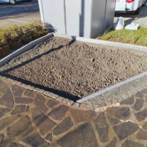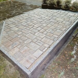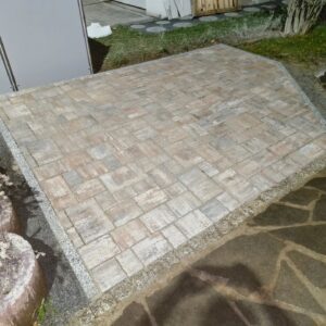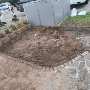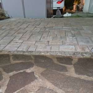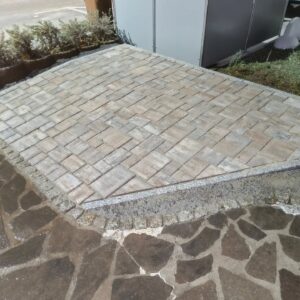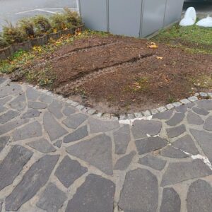 Austausch Altbestand Polygonalplatten durch Neubestand Granit-Pflaster und Pflaster-Einfassung