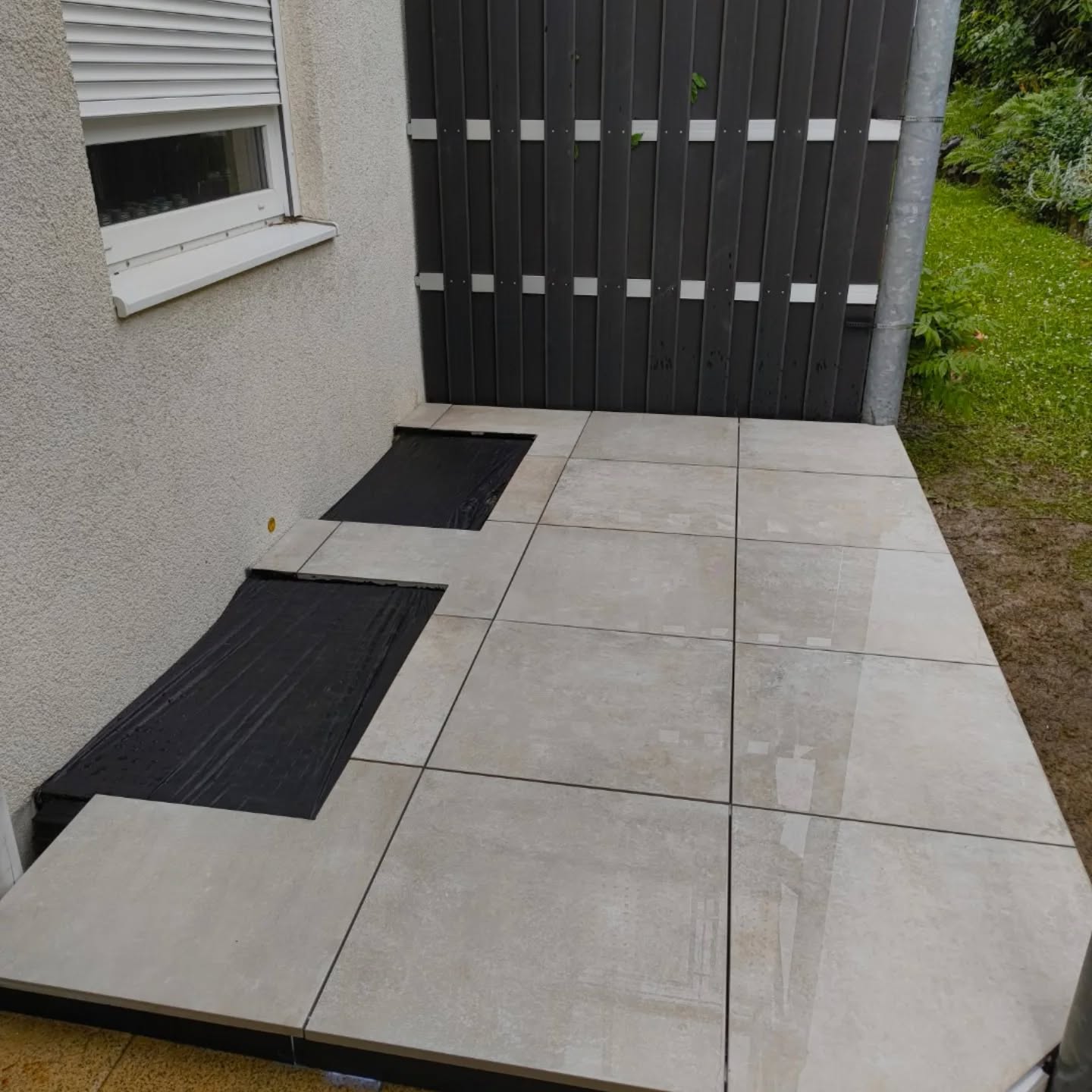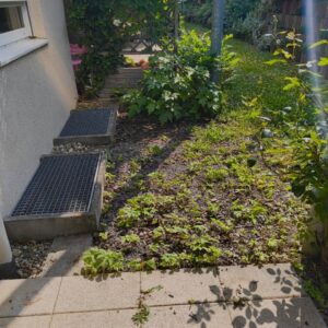 Austausch Altbestand Polygonalplatten durch Neubestand Granit-Pflaster und Pflaster-Einfassung